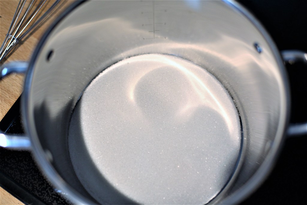1. Ha sukkeret i en stor kjele og sett på medium varme (ca. på 5 av 9).