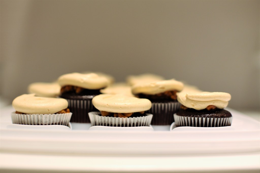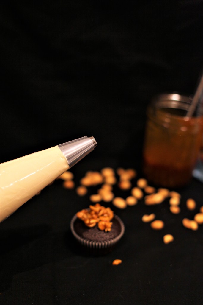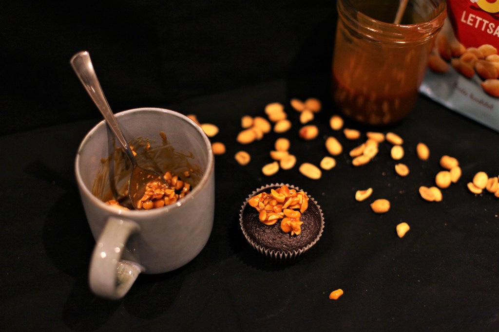 6. Fordel 1 ts med karamell peanøtt blandingen på alle cupcakesene.