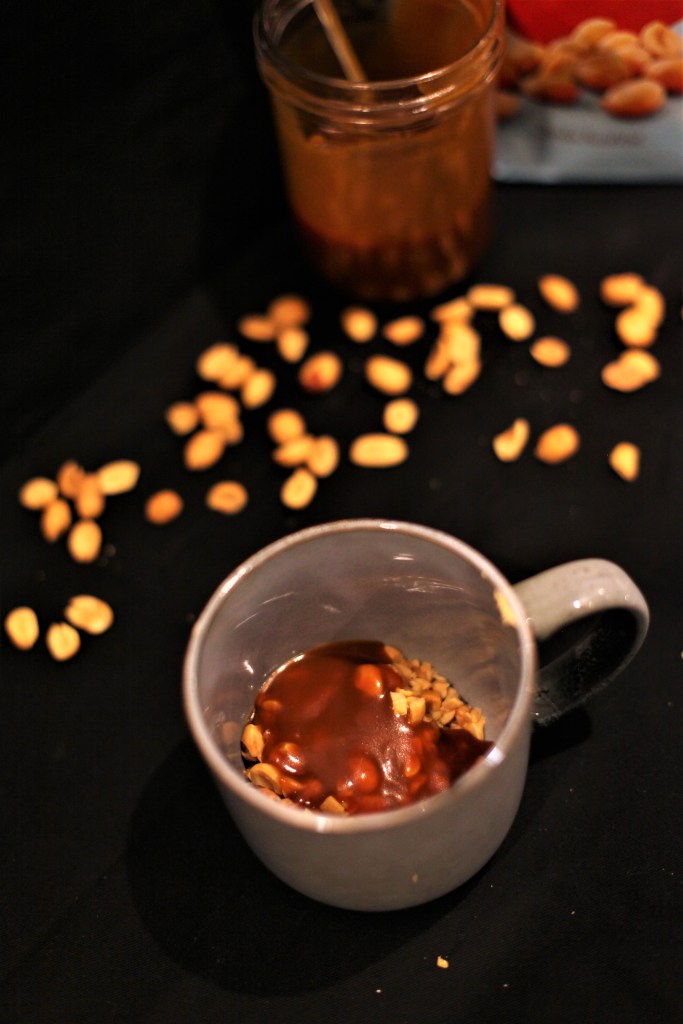 4. Grov hakke 1 dl peanøttene og ha i en liten bolle/skål (kopp).