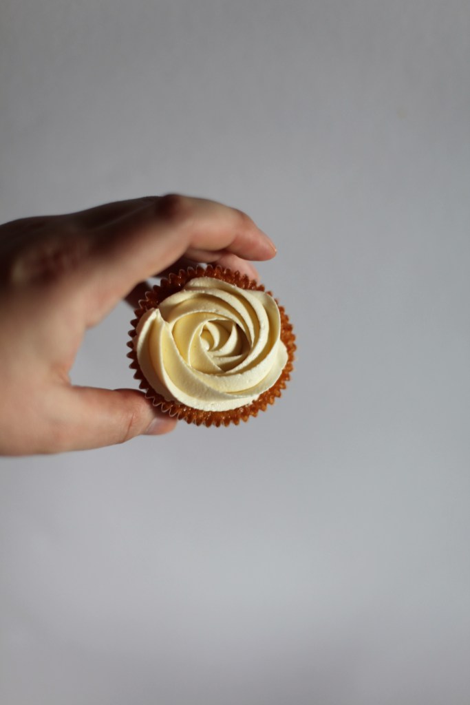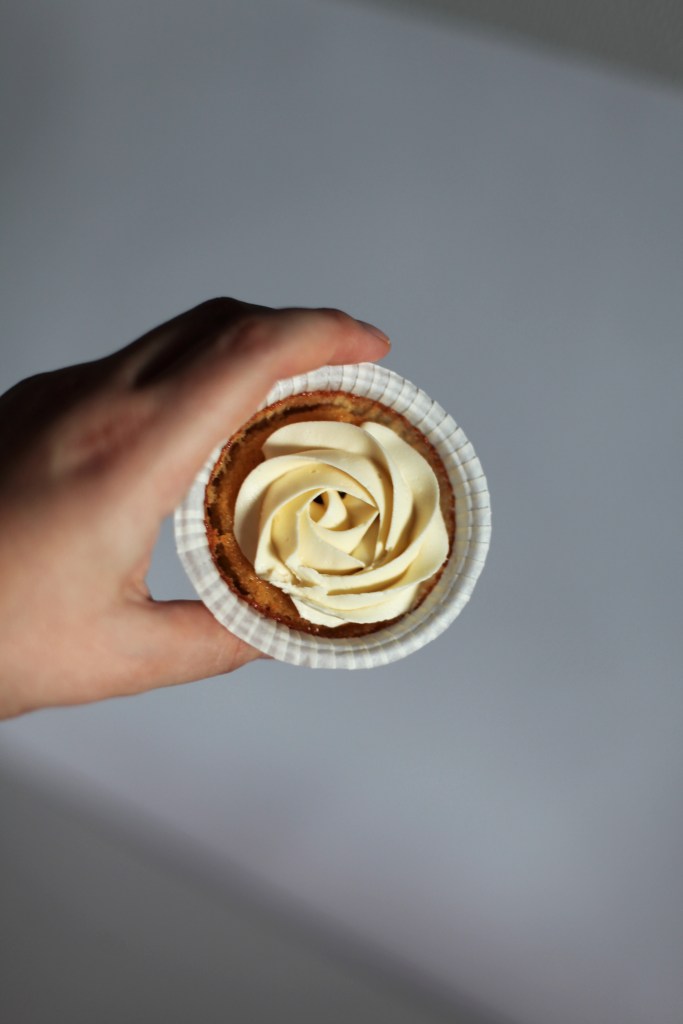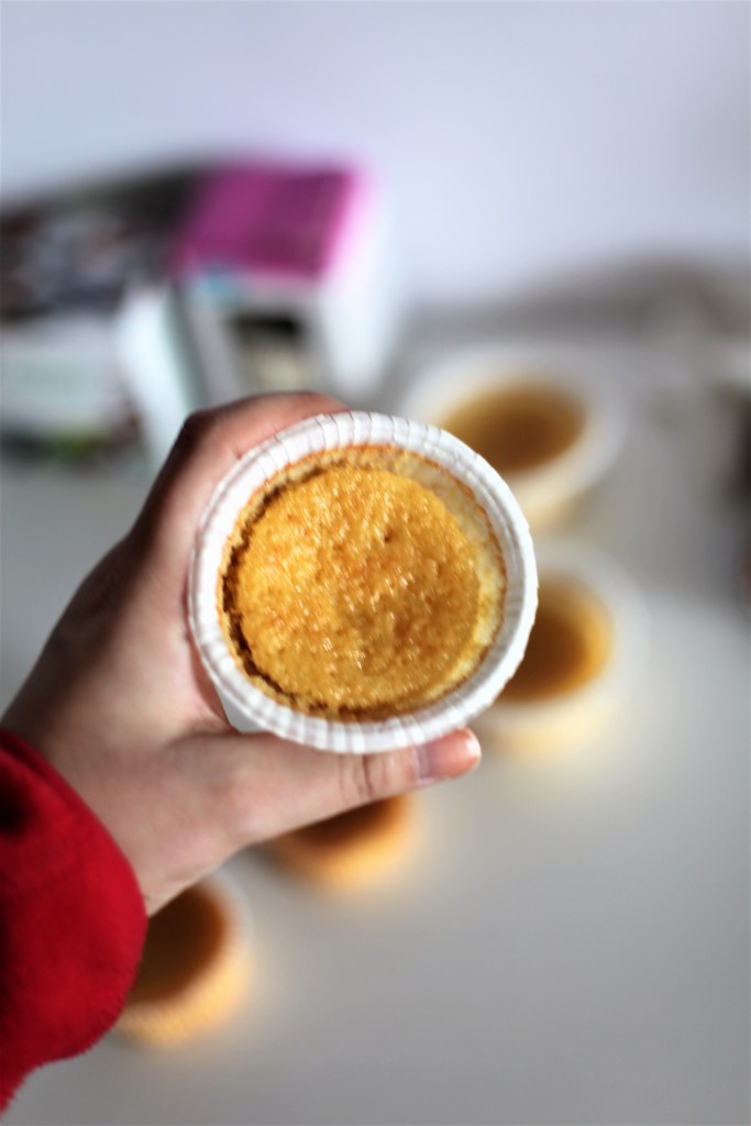 Muffinsen løsnet fra formen og var alt for små i forhold til formen. Dette likte jeg ikke. De ble ikke flotte og runde som jeg var ute etter. Jeg prøvde noen andre former jeg hadde hjemme selv om jeg vitse at jeg ikke likte disse formene. Selvfølgelig ble jeg heller ikke fornøyd med disse. De hadde en veldig flat form (ikke den typiske cupcake fasongen) det var også flere plasser de løsnet fra formene. Muffinsene ble også mye mørker. Det er mest sannsynlig fordi formene er mindre og at de da ble for mye stekt. Flere av muffinsene ble også skeive så noen var høye på en side i formen og lave på den andre siden. Jeg trives best når de er flate eller runde i formen. Dette er alt etter oppskriften.