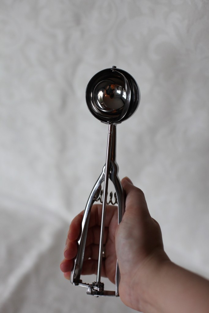 Denne is skjen er god til isen men også til å ta muffins røren i formen. En slik skje er ca. en halv form å det passer for det meste perfekt oppskriftene. Den er enkelt å bruke og tåler oppvaskmaskinen som gjør den lettvint å rengjøre.