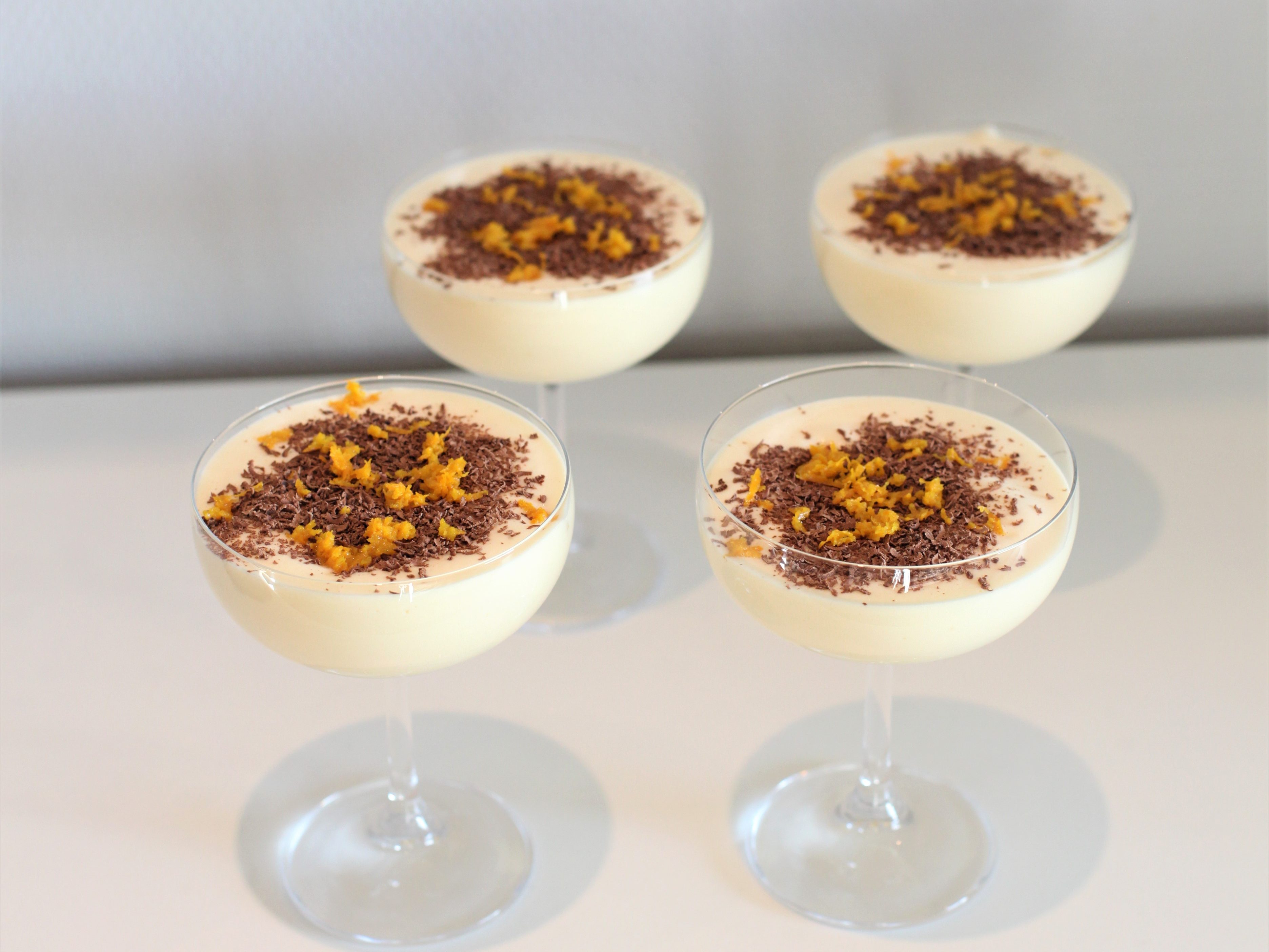- Hel det så over i ønsket glass og strø over revet appelsin skall og sjokoladen. Anbefaler og spise med skje. Eggedosisen må lagges rett før servering da den raskt skilles igjen.