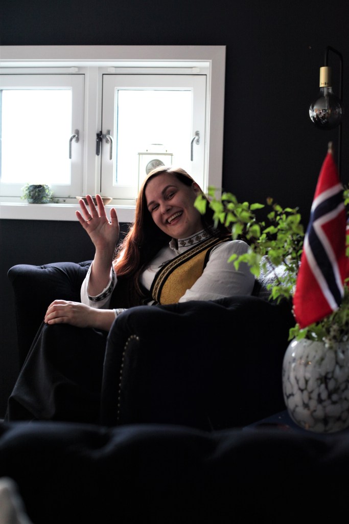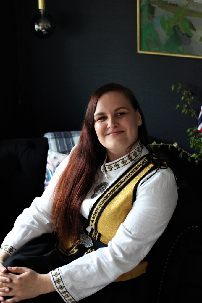 Min mor og jeg reiste sammen inn til hun som har designet drakten og hun hjalp meg og finne rette størrelsen. Hun er bare en helt fantastisk dame og hun gjorde dagen så kjekt og minnerik for meg og mor. Jeg vil absolutt sjekke ut draktene hun lager.