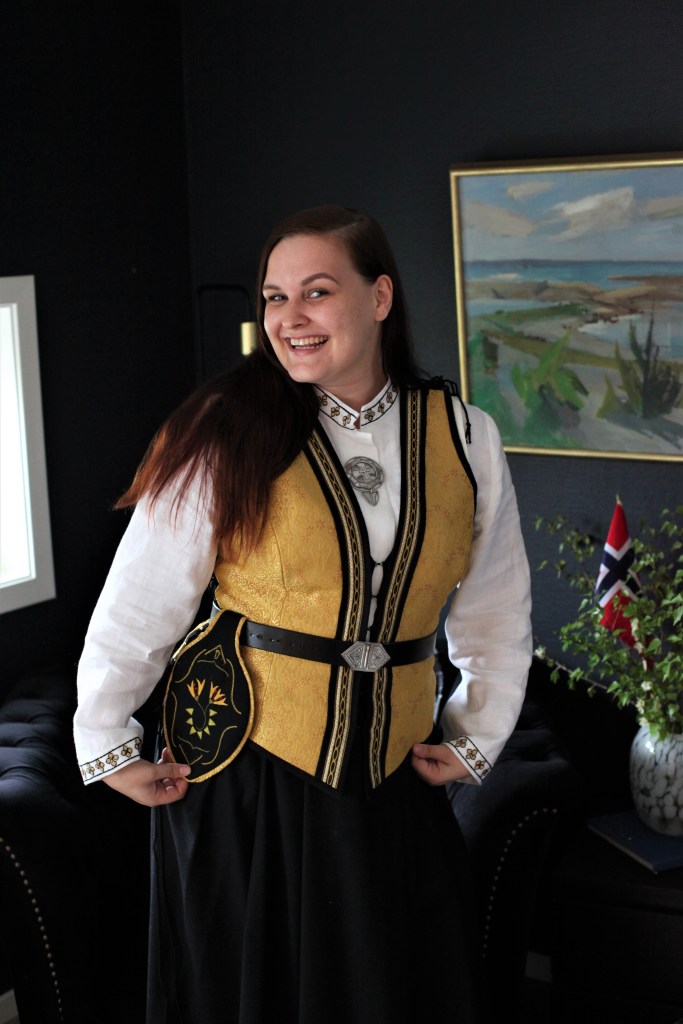 Jeg gleder meg til og bruke bunaden min i år da jeg ikke har fått bruk den på ca. 8 år. Koppen min har forandret seg mye siden jeg var konfirmant og jeg måtte derfor inn og få ordnet med en ny vest og skjorte, men skjørtet kunne jeg heldig vis bare sy ut.