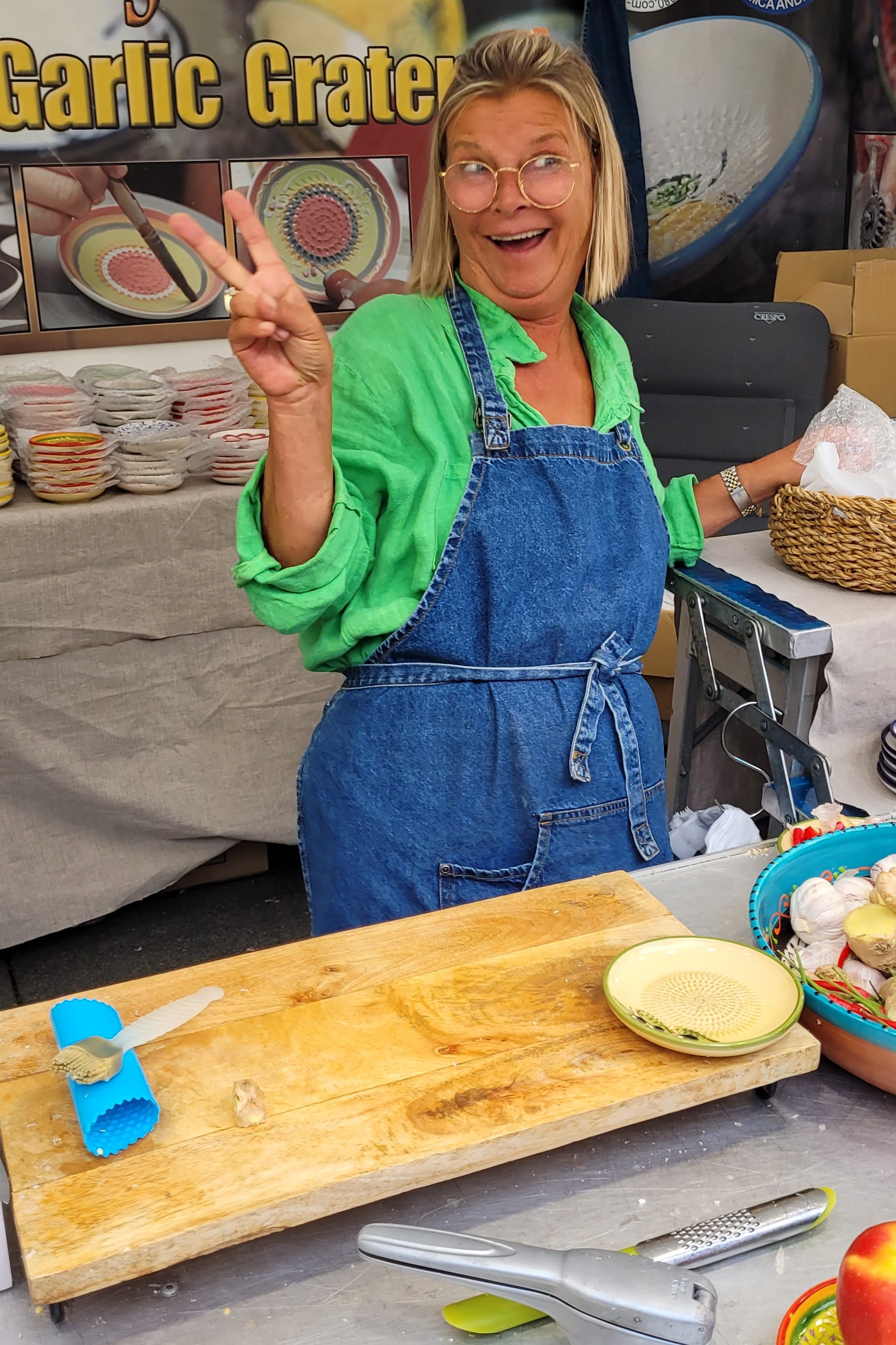 Så gikk turen for og finne oss noe dessert. Vi gikk runden for og se om vi kunne finne noe godt til dessert. Da kom vi over en bod med ei kjekk dame som solgte håndlaget keramikk fat som fungerer som et rivjern. Dette tok interessen min med en gang. Vi måtte selvfølgelig bort og se hva dette gikk ut på.