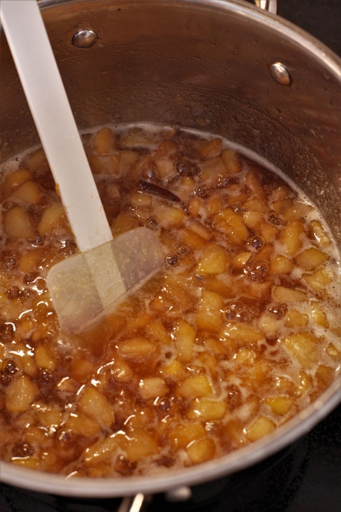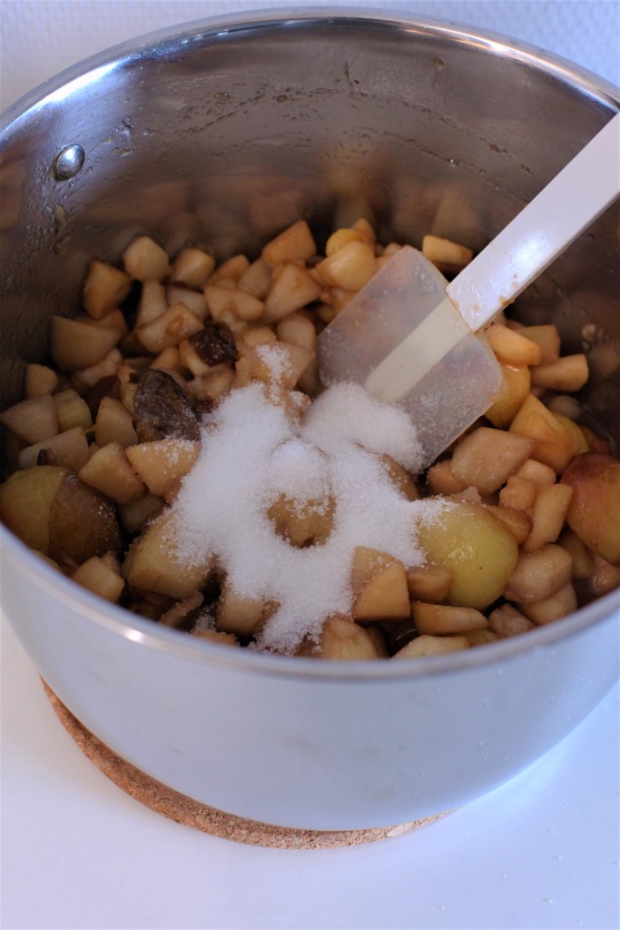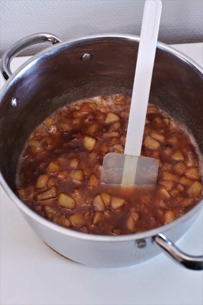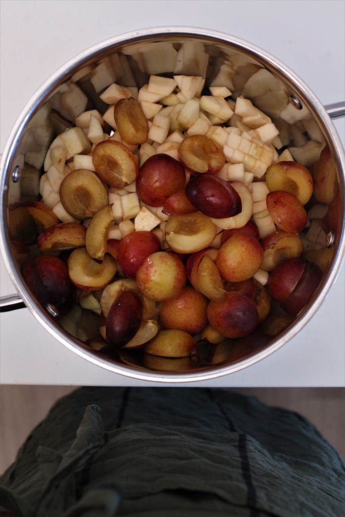 Ved punkt 2 begynte jeg alt og legge merke til at jeg hadde brukt feil pærer. Eplene og plommene ble møre men ikke pærene. Jeg tenkte at pærene sikker ble møre til slutt, så jeg fortsatte til punkt 3.