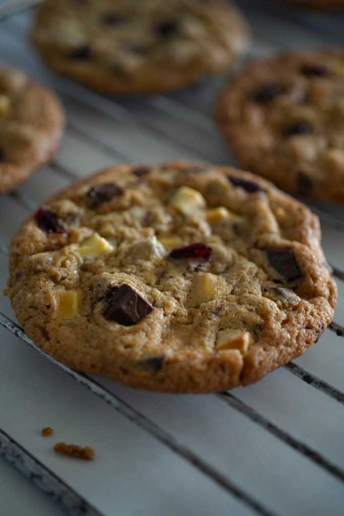 Tidligere i år har jeg delt 2 fantastiske oppskrifter til hjemmelaget kjeks. Husest favoritt kjeks og påske kjeks. Her kommer variasjon nr. 3 med hvit sjokolade, mørk sjokolade og tørket tranebær. Det har tatt litt tid og få den rette mengden sjokolade vs bær, men her kommer oppskriften.