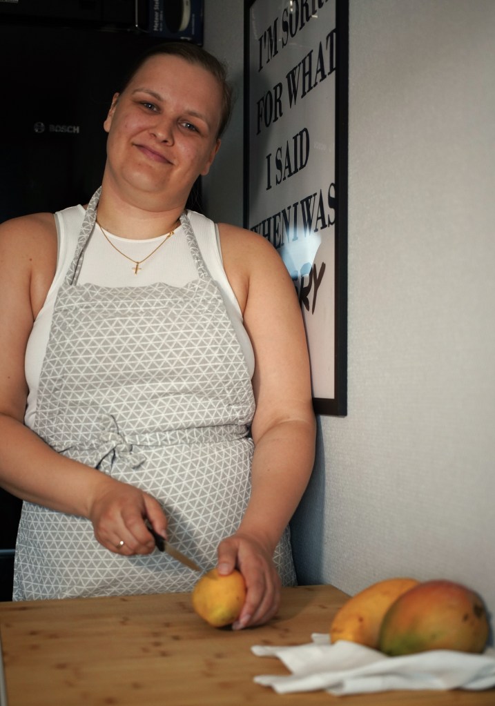 Jeg falt pladask for mango da vi var i Afrika som liten. Der fikk jeg smake min første mango og jeg har likt mango hel siden. Nå som mangoen er på sesong så ønsket jeg og lage noe av mango. Mango er kjempe godt til og spise for seg selv men også til smoothi, frukt salat, mango salsa og mye annet godt.