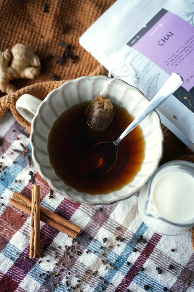 For noen år tilbake så åpnet det en ny kaffebar her i hjembygda. Jeg ønsket og støtte dem, men siden jeg ikke er en kaffe drikker så måtte jeg forhøre meg om de langet andre varme drikker. Eieren av kaffe baren anbefalte chai latte. Dette hørstes fristene ut for en kakao, krydder og kanel elsker. Selvfølgelig måtte jeg prøve dette og jeg har vært hektet siden. Min favoritt er med en mild chai te, hel melk, brunt sukker med kanel på toppen.