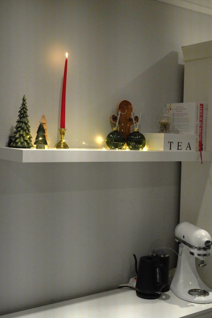 - Jule stjerner og lys: Jeg er oppvokst med en julestjerne i kjøkken vinduet. Det har alltid vært det første tegnet for meg at vente tidene er her. Når det blir mørkere ute så er det kjekt og være på kjøkkenet med dempet lys det bare julestjernen og jule lyse lyser opp rommet. Tenk dem stemmingen og sitte der med en kopp gløgg, jule musikk og noen og snakke med. Vær kreative og pynt gjerne med andre jule lys også på kjøkkenet også.