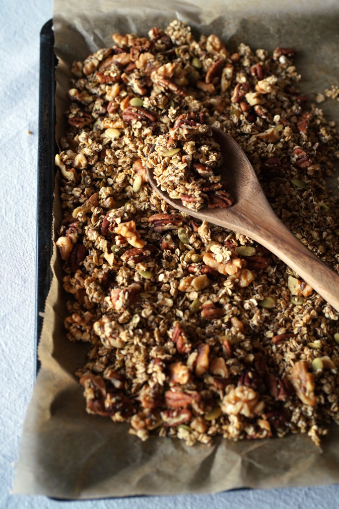 Jeg liker godt og spise yoghurt til frokost, lunsj eller kveldsmat. Da liker jeg godt og ha granola på. For ca. 10 år siden så ønsket jeg meg noe annet og ha oppi yoghurten min en musli-en som mor og far alltid hadde hjemme. Det ble første gangen jeg laget hjemmelaget granola. Det var mye bedre en musli-en og kjempe enkelt å lage. Dette har jeg brukt mye sammen med yoghurt og smoothie opp igjennom årene.