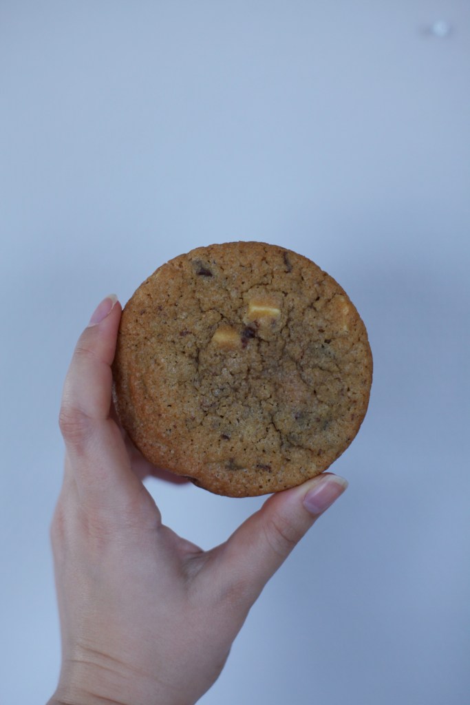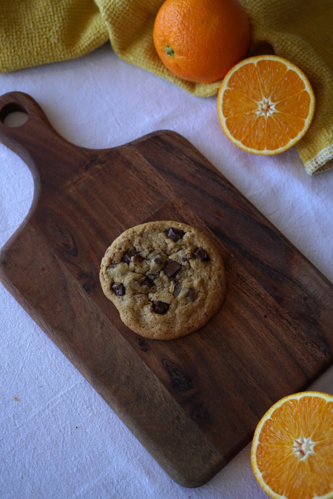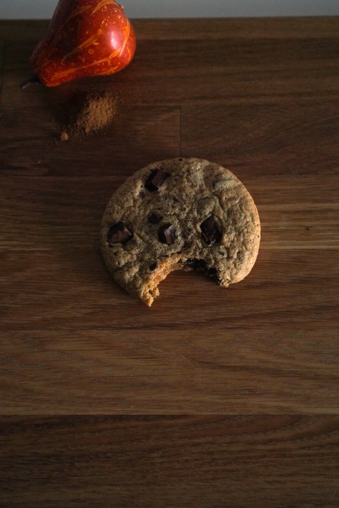 Krem sammen smør, sukker, vanilje ekstrakt og appelsin pulveret i kjøkken maskinen med K-spaden. Bland inn resten av de tørre ingrediensene og egg. Vend så inn 200g grov hakket sjokolade.
